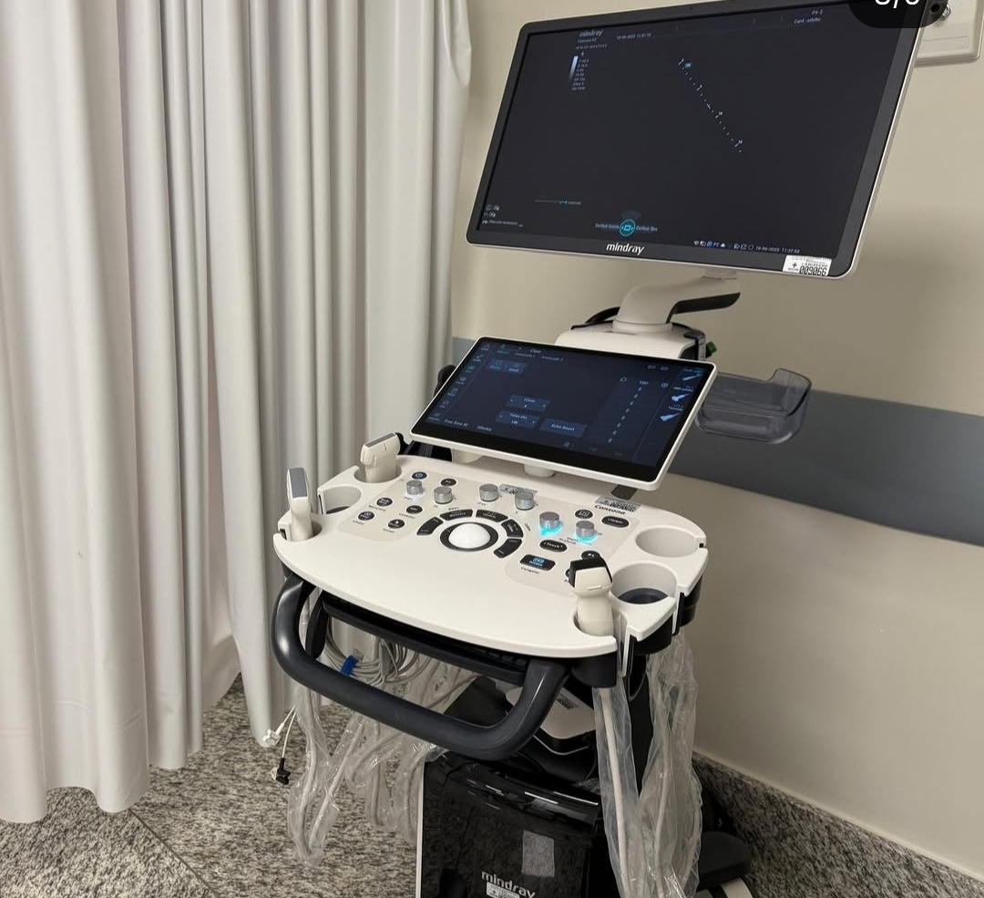 Os equipamentos são um ultrassom, mais moderno do mercado, e um agitador de plaquetas.